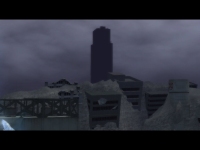そして,ガイア教徒の本拠地である「総本山」は,「聖都アルカディア」とは正反対の景観となっている。自由が信条のガイア教徒には計画性のない人間が多く,街は整備されず荒れ放題,建造物のほとんどはジャンクでできている。山上にはコンクリートで作られた無骨な“風雲城”が威圧的にそびえ立っており,過去に悪魔対策のため備え付けられた大砲が,ガイア教団の“力こそ正義”という思想を表している
